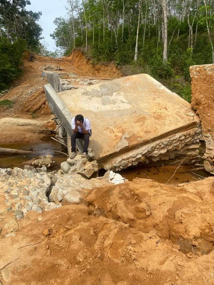 Keterangan Photo : Jembatan yang dibangun dengan anggaran Rp. 150. Jt dengan kondisi hancur diduga asal jadi.(M.Yusup)