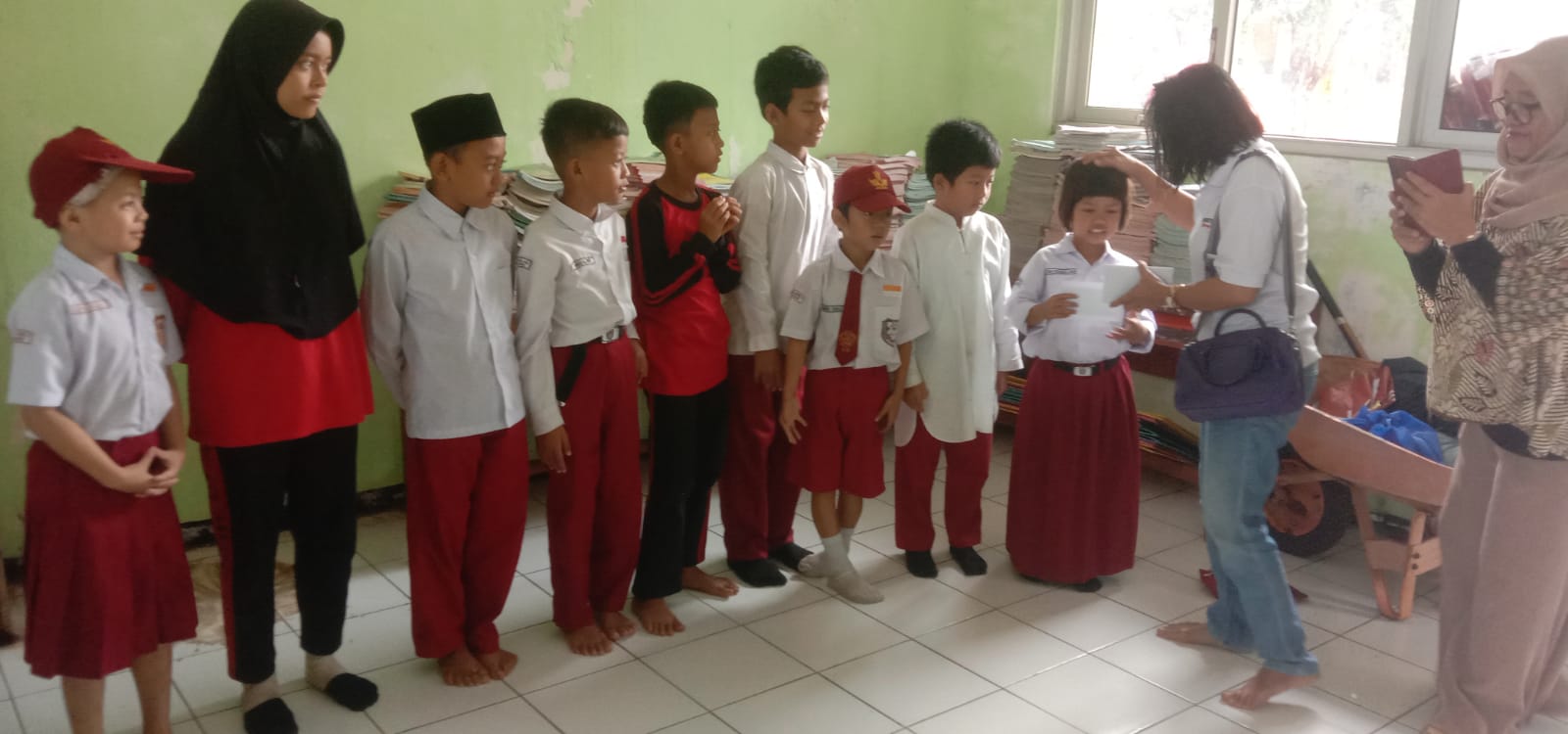 Pada penyerahan santunan Diana Papilaya didampingi oleh kepala sekolah SD Negri 03, Tonjong Ibu Eha untuk penyerahan santunan bagi anak yatim, setelah selesai pembagian para guru dan kepala sekolah mengucapkan terimakasih kepada Ketua DPC AWPI atas perhatiannya kepada murid yang mendapat santunan.
