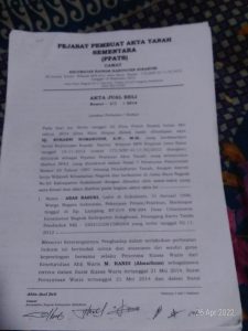 “Karena itu kita menduga kuat Kades juga terlibat bahkan mendukung upaya penyerobotan lahan keluarga Alm Itjih Alias Tjanji dan ada bukti tanda tangan yang berbeda di dalam AJB tersebut yang dilakukan oleh Kades.
