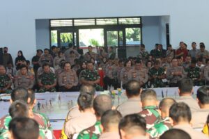 “Saya himbau kepada rekan-rekan sekalian tetap bekerja sesuai SOP (Standar Operasional Prosedur) yang kita punyai baik TNI/Polri jaga Netralitas, berikan pelayanan pada masyarakat yang terbaik hindari adanya konflik-konflik komunal maupun horizontal sehingga kegiatan apapun di wilayah kita tetap terjaga kondusif, Terkait tahapan Pemilu perlu saya sampaikan kepada rekan-rekan bahwa 297 ribu kotak suara berikut surat suara dan perlengkapannya di geser dari Gudang menuju KPPS tanggal 13 Februari, selanjutnya dari KPPS geser ke PPS, nanti dari PPS akan geser ke TPS ini perlu adanya suatu kesamaan sikap baik itu dari teman-teman TNI maupun Polri juga dari panitia penyelenggara yaitu KPU maupun pengawas Bawaslu,” himbau Kapolda.