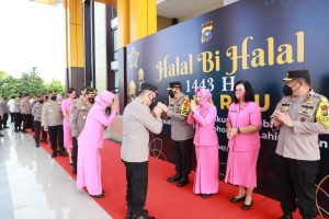 Usai apel, kegiatan dilanjutkan dengan halal bihalal. Kapolda Riau didampingi Ketua Bhayangkari Riau, Nyonya Nindya M Iqbal, Wakapolda dan seluruh pejabat utama beserta istri menggelar halal bihalal dengan jajaran personel Polda Riau. Tujuannya, adalah untuk memperkuat silaturahmi dan persaudaraan di jajaran Korps Bhayangkara Riau.(HM Panggabean SH/Tim)