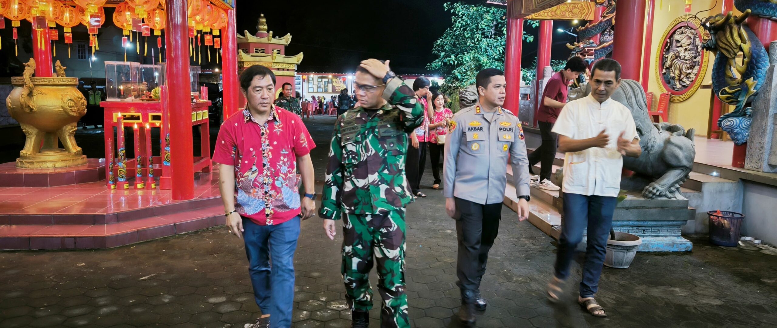 PurbaIingga | mediasinarpagigroup.com – Kapolres Purbalingga AKBP Achmad Akbar bersama Dandim 0702 Letkol Inf. Untung Iswahyudi memantau langsung pengamanan kegiatan ibadah Imlek di Klenteng Hok Tek Bio PurbaIingga, Selasa (28/1/2025) malam.