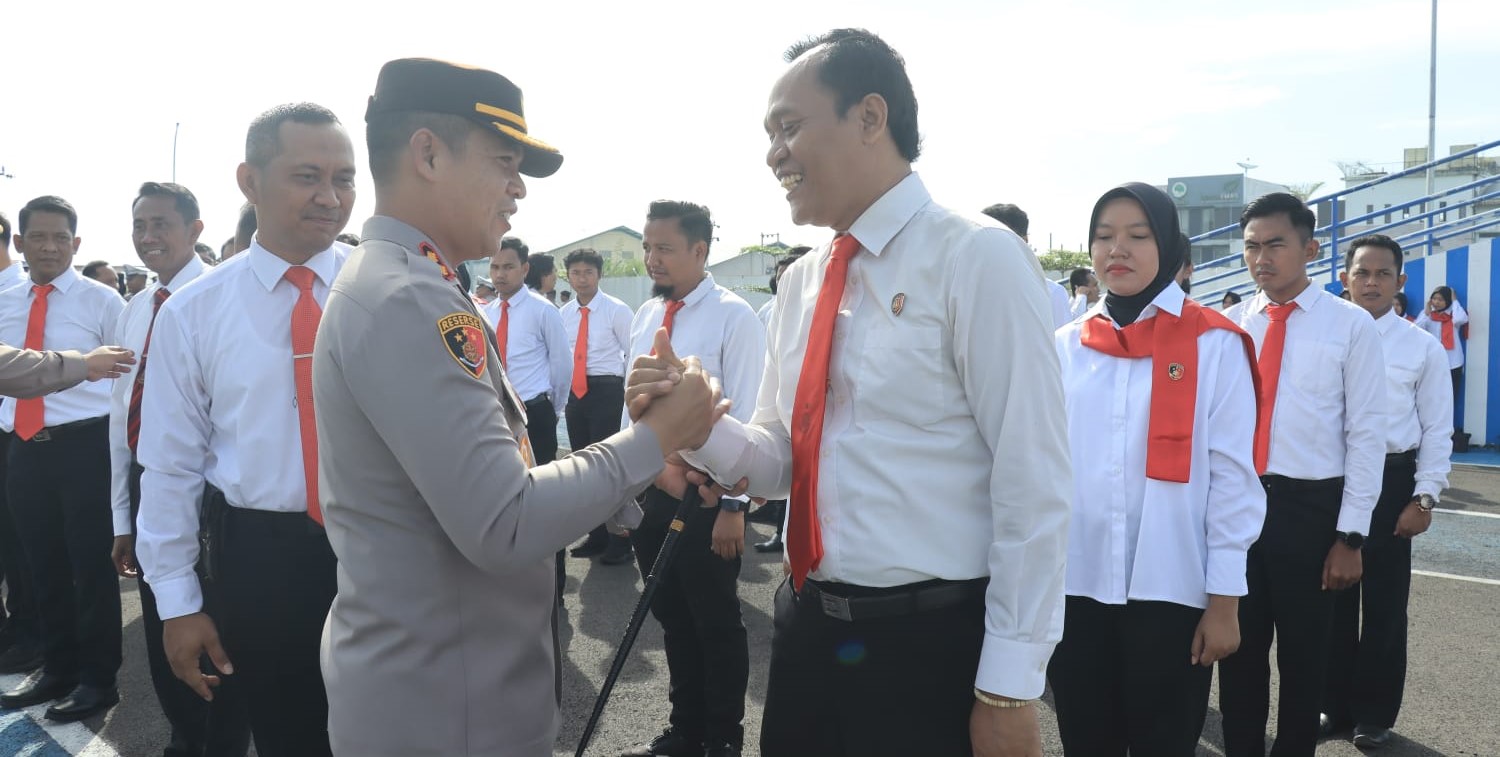 Usai apel, AKBP Achmad Akbar tampak berkeliling dan berjabat tangan dengan seluruh personel sebagai bentuk perpisahan.(Widoyo)