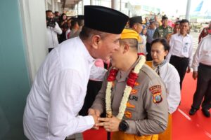 Medan| mediasinarpagigroup.com – Forkopimda Sumatera Utara beserta PJU Polda Sumatera Utara sambut kedatangan Kapolda Sumut yang baru Irjen Pol Agung Setya Imam Effendi, S.H., S.I.K., M. Si., di Bandara Udara Internasional Kualanamu Kabupaten Deli Serdang, Kamis (20/07/2023) siang.
