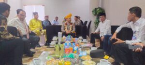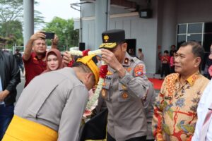 Giat penyambutan Kapolda Sumatera Utara beserta rombongan di awali dengan sambutan berupa tarian serta pemasangan pakaian khas adat melayu oleh Bupati Deli Serdang di lanjutkan dengan pemasangan kalung bunga yang di berikan oleh Waka Polda Sumatera Utara.