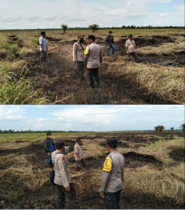 Setelah mendapat informasi dari Penghulu Pematang Damar,yang di terima Kapolsek, bahwasanya diarea kebun masyarakat terjadi kebakaran,oleh karena itu,Kapolsek Bangko Pusako,bersama Babhinkamtibmas,serta beberapa jajarannya,langsung turun ke area lahan yang terbakar,