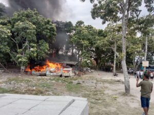 Samosir | mediasinarpagigroup.com – Sekitar pukul 14.00 WIB, kebakaran melanda sebuah gudang di lokasi Parkiran Pantai Pasir Putih Parbaba, Desa Huta Bolon, Kecamatan Pangururan, Kabupaten Samosir. Gudang yang terbakar merupakan milik MS, seorang warga setempat. (09/04/2024)