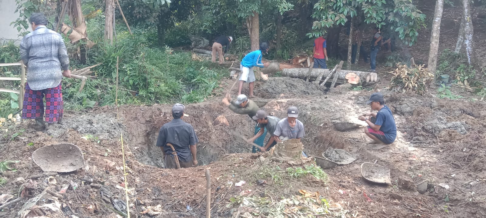 Tampak juga terlihat pekerja yang sedang menggali tanah.