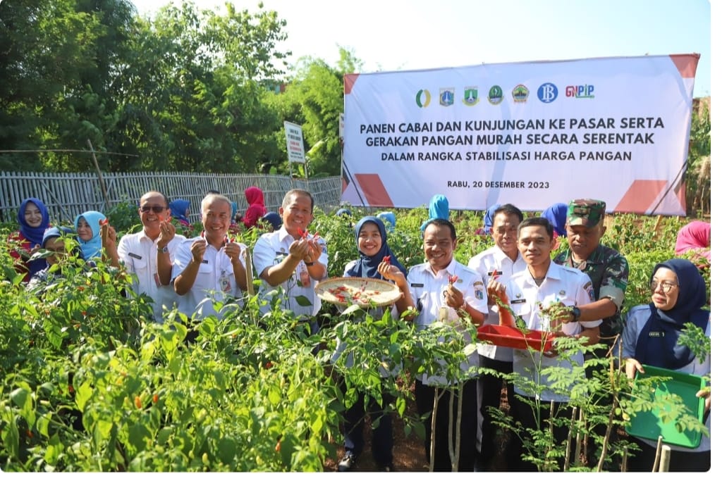 Jakarta | mediasinarpagigroup.com – Untuk mengendalikan stabilitas harga pangan, Penjabat (Pj) Gubernur Provinsi DKI Jakarta, Heru Budi Hartono bersama para Walikota dan Bupati di wilayah DKI Jakarta serta unsur pimpinan di sejumlah daerah seperti Banten, Jawa Barat, dan Jawa Tengah, Sulawesi Selatan, dan DIY Yogyakarta melaksanakan kegiatan panen cabai dan kunjungan ke pasar serta gerakan pangan murah secara serentak, Rabu (20/12).