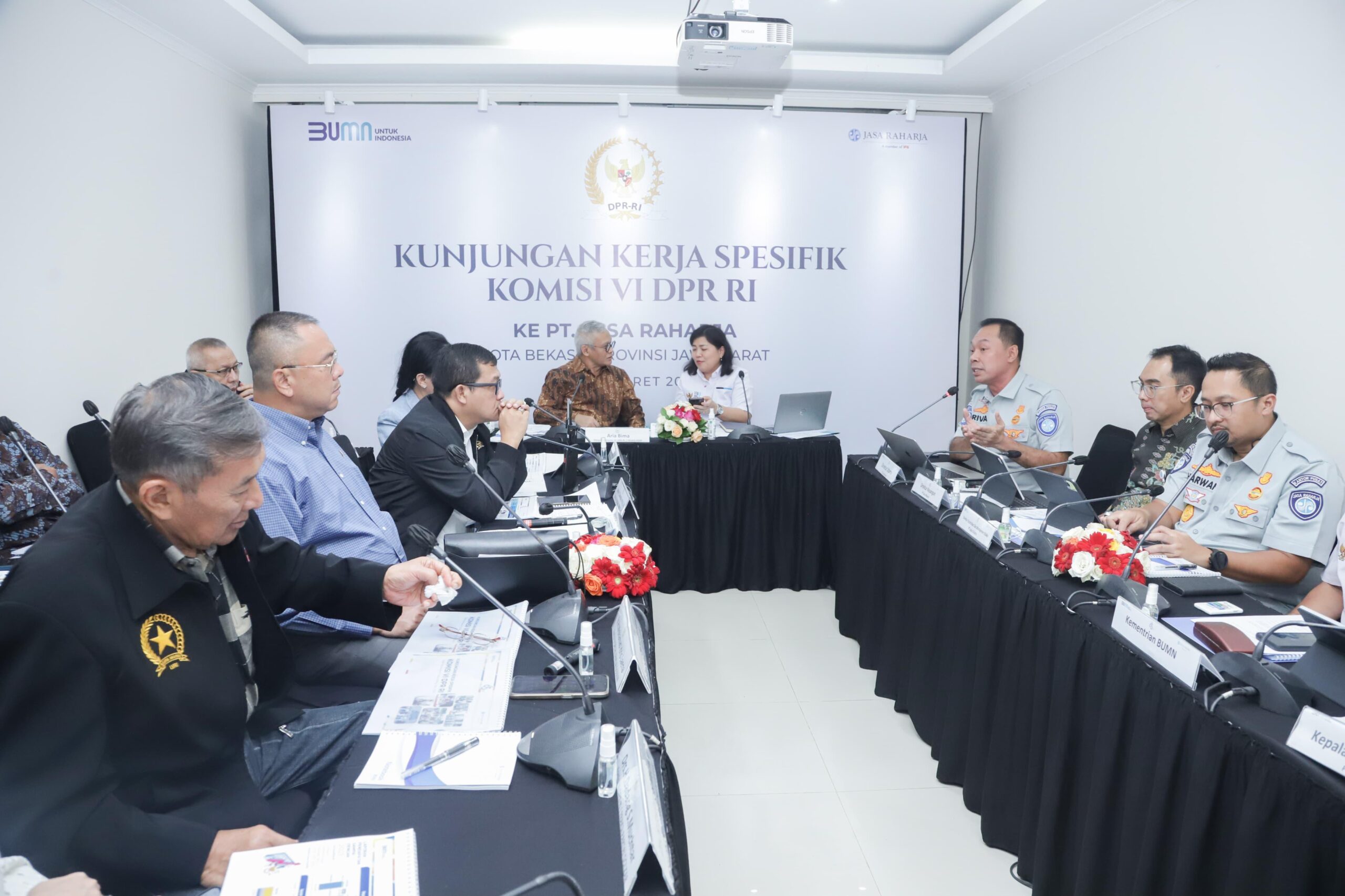 P A G Kunjungan Kerja Spesifik Komisi VI DPR RI ke Jasa Raharja juga dihadiri, antara lain Asisten Deputi Bidang Jasa Asuransi dan Dana Pensiun Kementerian BUMN Hendrika Nora Osloi Sinaga, Direktur Keuangan Jasa Raharja Bayu Rafi Sukmawan, Direktur Kepatuhan & Manajemen Risiko Jasa Raharja Harwan Muldidarmawan, Kepala Unit Jasa Raharja Kantor Pusat, dan Kepala Jasa Raharja Cabang Jawa Barat Hendriawanto. Sementara, para Anggota Komisi VI DPR RI yang hadir, di antaranya Rieke Diah Pitaloka, Sonny T. Danaparamita, Harris Turino, dan sejumlah anggota Komisi VI lainnya.(Humas/Aqtoris)