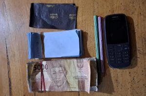 Beberapa barang bukti diamankan terkait penangkapan tersebut, mulai dari uang tunai total ratusan ribu rupiah, kupon isi pasangan judi, kertas ramalan, kertas berisi daftar angka keluar, arsip pemasangan judi hingga kertas karbon. Beberapa ponsel juga turut diamankan.