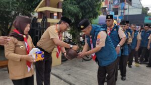 Purwokerto | mediasinarpagigroup.com – Gerakan Pramuka Kwartir Cabang (Kwarcab) Cianjur Jawa Barat berkunjung ke Kwarcab Banyumas, Kamis (28/12/2023) di Pendopo Sanggar Bakti Pramuka Jl. Suharso Purwokerto. Rombongan Kwarcab Cianjur dipimpin oleh Wakil Ketua Bidang Binawasa Irwan Maulana. Rombongan yang berjumlah 20 orang tersebut mendapat sambutan tradisi. Sebelum memasuki Pendopo mereka diwajibkan membasuh tangan dengan “Air Mas” dari “kendi”, kemudian disambut dengan tongkat pora oleh DKR dan Unit Ubaloka Kwarcab Banyumas, baru memasuki pendopo Kwarcab Banyumas.