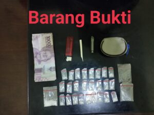 BB yang dibawa bersama tersangka ini, 1 bungkus plastik besar yang berisikan serbuk kristal diduga narkotika jenis sabu, 14 bungkus plastik kecil yang berisikan serbuk kristal diduga narkotika jenis sabu.