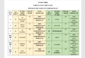 Hasil dari LOKETA PAI Pademangan tingkat sekolah dasar 2023 sebagai berikut :