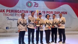 Banyumas | mediasinarpagigroup.com – Persatuan Guru Republik Indonesia (PGRI) Raya Banyumas, yang terdiri dari empat Kabupaten, yakni Banyumas, Purbalingga, Cilacap, Banjarnegara sabet Juara Umum Lomba Tingkat PGRI Provinsi Jawa Tengah. Tidak tanggung-tanggung, lima penghargaan berhasil diraih. Penghargaan tersebut diterima saat acara Puncak Hari Ulang Tahun (HUT) ke-78 Tingkat PGRI Provinsi Jawa Tengah, di Balirung Universitas PGRI Semarang, Sabtu, (9/12/2023).
