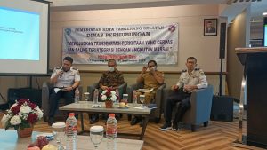 Acara dibuka boleh Kepala Dinas Perhubungan Kota Tangsel bapak Drs.Chaerudin M. Si. Dalam sambutannya Kadishub Tangsel mengucapkan terimaksih kepada Narasumber dan para pengusaha angkutan yang ada di Kota Tangerang Selatan ini.