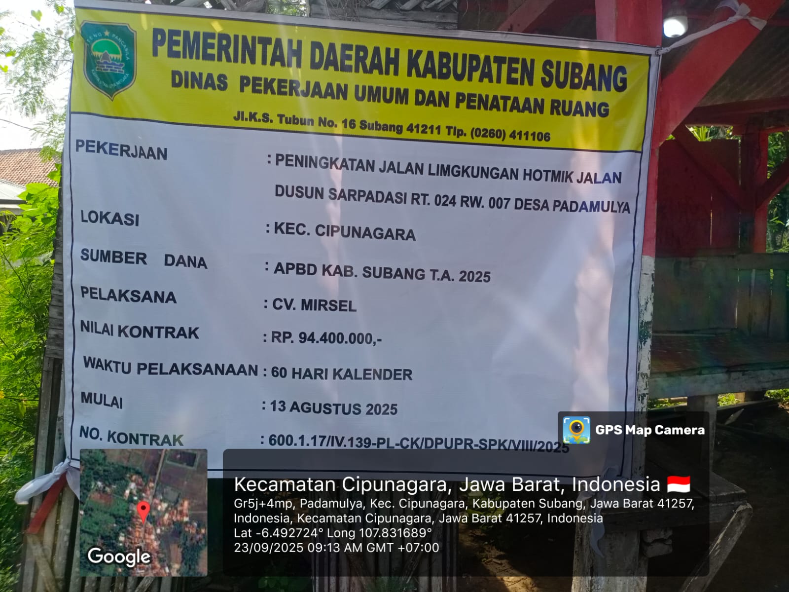 Nomor kontrak : 600.1.17/lV.139-PL-CK/DPUPR-SPK/VIII/2025,