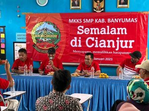 Banyumas | mediasinarpagigroup.com – Musyawarah Kerja Kepala Sekolah (MKKS) SMP Kabupaten Banyumas menggelar aksi peduli bencana Cianjur. Kegiatan merupakan upaya memupuk rasa solidaritas sesama guru, dan juga melatih rasa empati siswa SMP Kabupaten Banyumas, untuk peduli kepada sesama.