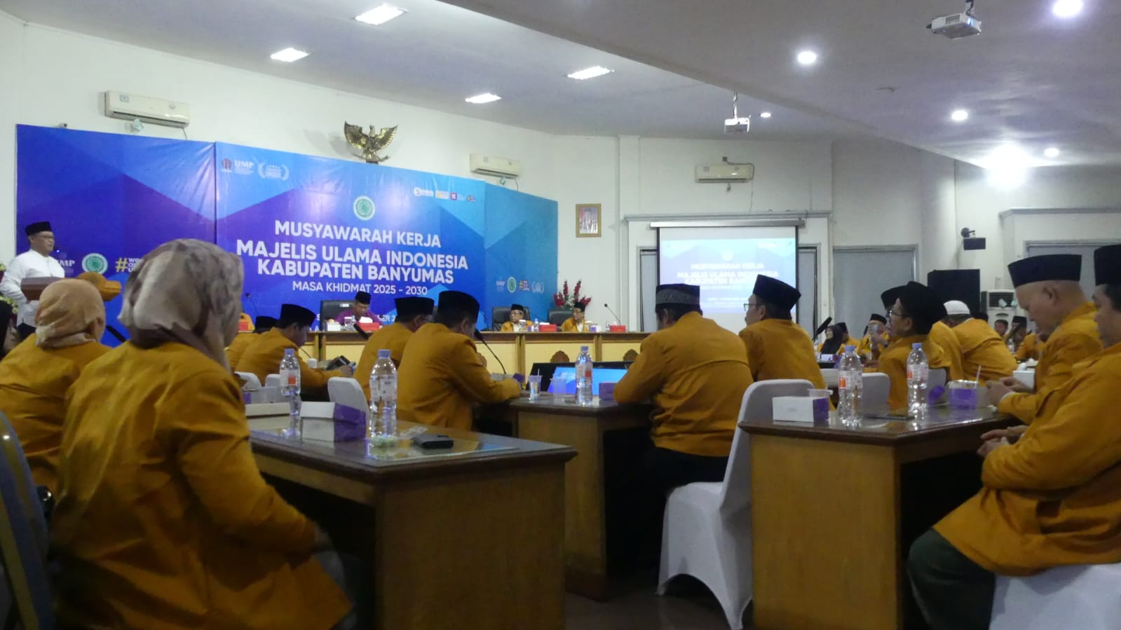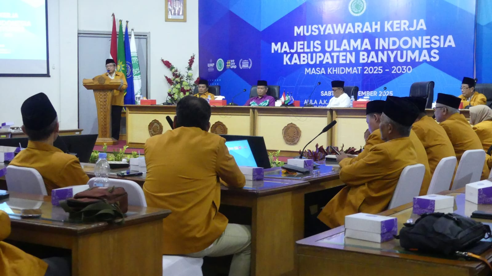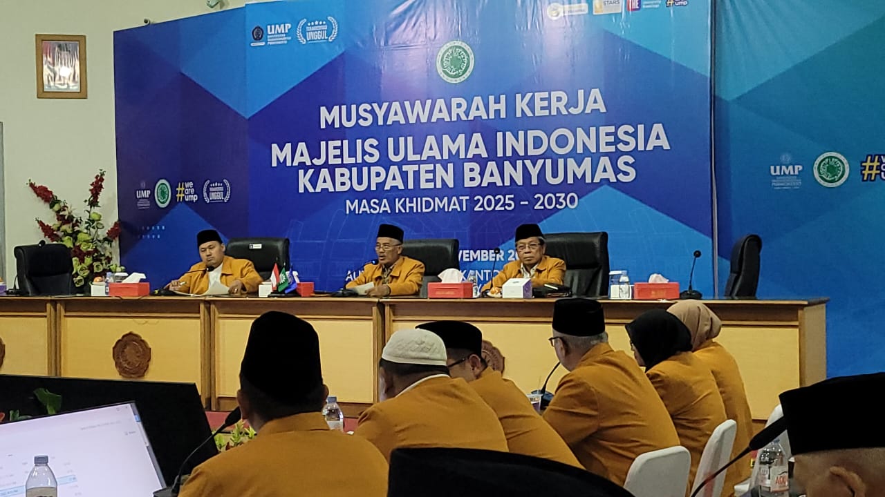 Banyumas – Musyawarah Kerja Majelis Ulama Indonesia Kabupaten Banyumas Masa Khidmat 2025-2030 yang pertama kali dilakukan di Universitas Muhammadiyah Purwokerto Sabtu 1 Nopember 2025. Acara ini dihadiri para anggota Majelis Ulama Indonesia ( MUI ) Kabupaten Banyumas dari berbagai komisi antara lain komisi Fatwa Hukum, Komisi Perundang-undang, Komisi Dakwah, Ukhuwah, Pengembangan Masyarakat, Komisi Pendidikan, Penelitian, Pembinaan Seni Budaya Islam, Komisi Pengembangan SDM, Sosial Ekonomi dan Umat, Komisi Perempuan, Remaja, Keluarga dan Komisi Informatika, Humas, Media massa.