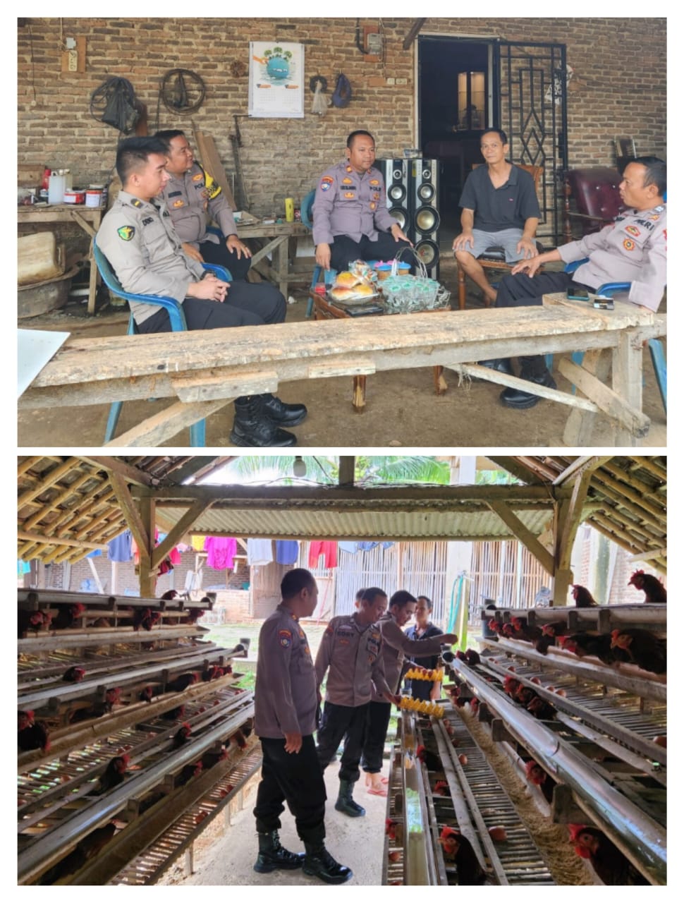 Tim Sat Binmas yang dipimpin oleh Kaur Bin Ops Iptu Eko Sujarwo bersama Kasi Kedokteran kepolisian Ipda Deno Madasa Subing dan anggota Bhabinkamtibmas, secara rutin melakukan kegiatan sambang untuk memastikan keamanan dan memberikan dukungan penuh terhadap potensi-potensi ekonomi masyarakat setempat. Pada hari ini, mereka mengunjungi beberapa peternakan ayam petelur dan unit usaha mebel di Pekon Mataram, Kecamatan Gadingrejo, Kabupaten Pringsewu.
