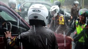 Tidak hanya itu, Kapolres Purbalingga juga membantu mendorong kendaraan yang mogok di jalan raya wilayah Kecamatan Mrebet, Kabupaten Purbalingga. Meski cuaca hujan deras Kapolres bersama rombongan turun langsung mendorong mobil agar bisa menepi dan tidak menimbulkan kemacetan.