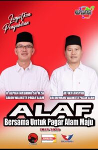 “ termasuk surat dukungan partai politik yaitu dari PDIP, HANURA dan Perindo. pasangan Alpian-Alfikriansyah (ALAF) bisa ditetapkan sebagai pasangan calon Walikota dan Wakil Walikota Pagar Alam,” katanya.