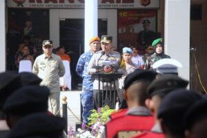 Pada kesempatan tersebut, pimpinan apel membacakan sambutan dari Kepala Kepolisian Negara Republik Indonesia, Jenderal Polisi Drs. Listyo Sigit Prabowo, M.Si., Dalam amanatnya, Ia menegaskan bahwa apel gelar pasukan ini merupakan bentuk komitmen untuk memastikan kesiapan personel dan sarana prasarana, serta memperkuat sinergi dengan stakeholder terkait.
