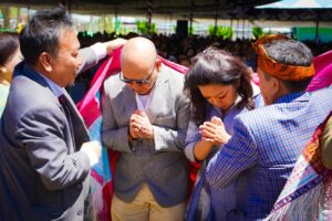 Cuaca cerah sejak pagi hari sepertinya mendukung seluruh rangkaian acara yang diawali dengan ibadah kebaktian rohani dan dilanjutkan dengan penyerahan ‘dekke’ dan ‘ulos’ dari Tulang Lumbantoruan, sebagai bentuk dukungan dan doa pemberangkatan Satika-Sarlandy menuju kemenangan Pilkada Taput.