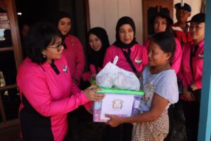 “Siang ini ibu Pj Ketua Bhayangkari Daerah Jawa Tengah menyalurkan bantuan sembako serta menyerahkan bantuan dari Ketua Umum Bhayangkari atau Ibu Kapolri yang diserahkan kepada warga yang terdampak banjir,” kata Kapolres Grobogan.