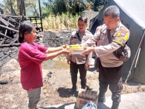 Usai menyerahkan tali asih Bripka M Syafei berpesan Kepada korban musibah kebakaran agar tetap sabar dalam menghadapi ujian ini.