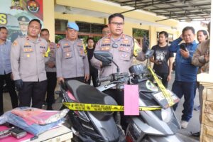 “Hasil penyelidikan mengarah pada identifikasi para pelaku, serta berhasil mengidentifikasi motor yang digunakan pelaku saat melakukan aksinya,” kata Kapolres Indramayu AKBP M. Fahri Siregar didampingi Kasat Reserse Kriminal AKP Hillal Adi Imawan saat menggelar press release di Mako Polres Indramayu, Rabu (17/4/2024)