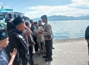 Samosir | mediasinarpagigroup.com – Sat Polair Polres Samosir terus menunjukkan komitmennya dalam memberikan pelayanan terbaik kepada masyarakat dan wisatawan. Bripka Rommel Siahaan, salah satu personel Sat Polairud Polres Samosir, melaksanakan tugasnya di dua pelabuhan penting, yakni Pelabuhan Kapal Motor Penumpang dan Kapal Feri di Desa Tomok serta Desa Ambarita, Kecamatan Simanindo, Kabupaten Samosir.