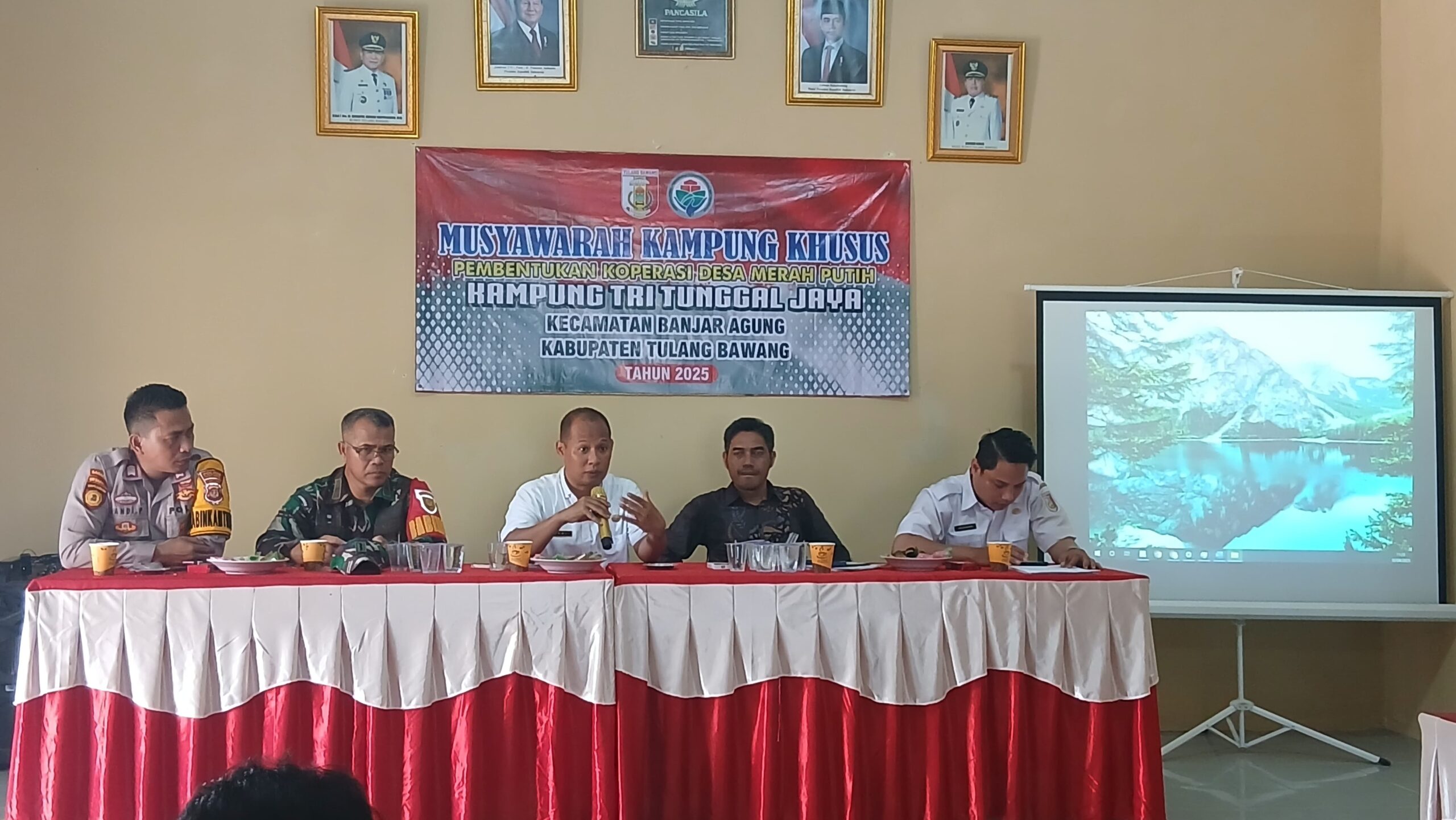Tulang Bawang | mediasinarpagigroup.com – Pemerintah Kampung Tri Tunggal Jaya, Kecamatan Banjar Agung, Kabupaten Tulang Bawang, dengan penuh rasa syukur telah resmi mengumumkan terbentuk koperasi desa Desa Merah Putih Tri Tunggal Jaya,pada hari Senin ( 02/06/2025).bertempat di Balai kampung setempat.hadir tokoh masyarakat,pemuda,Babinsa,Babinkantibmas.