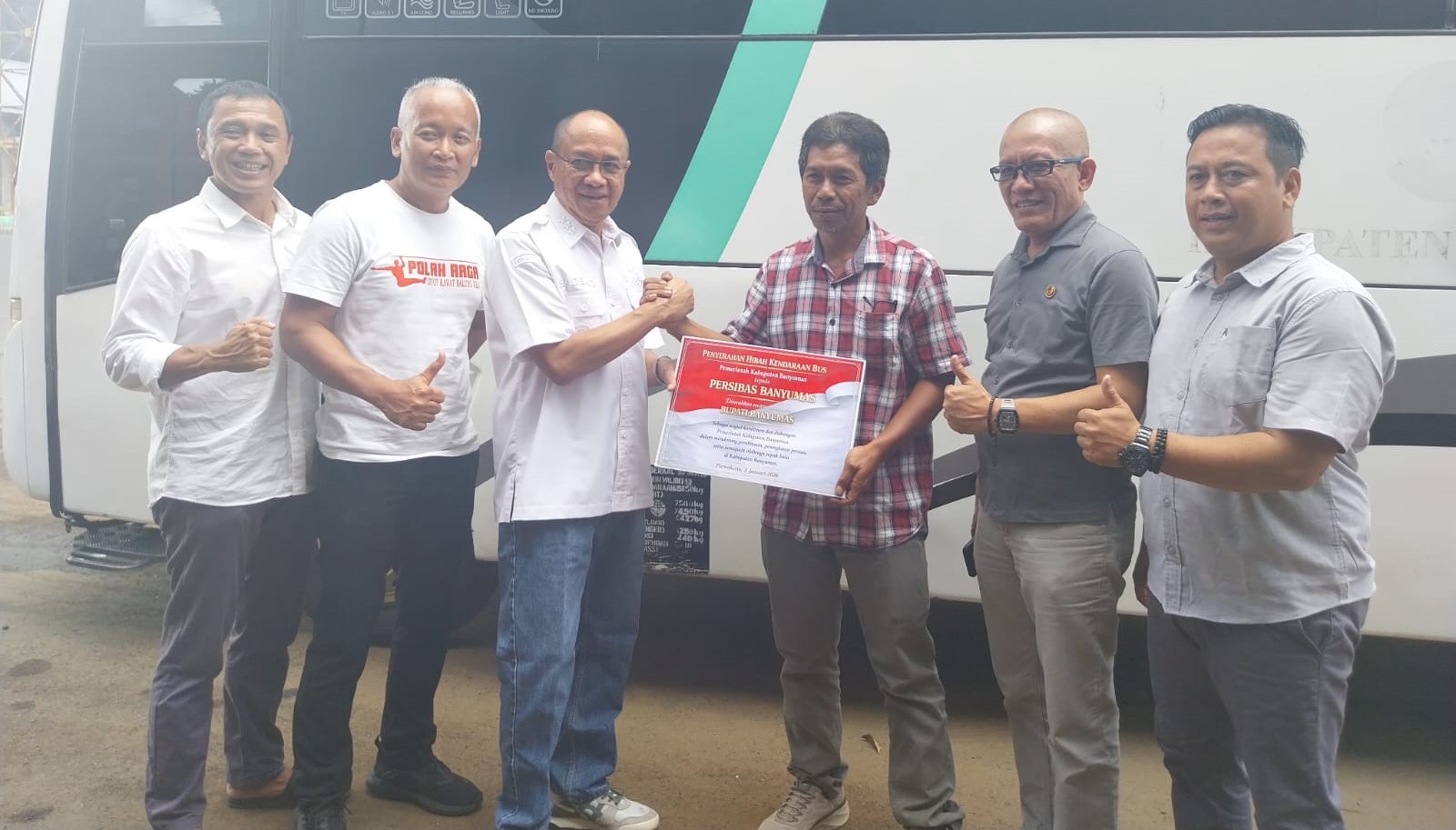 Banyumas | mediasinarpagigroup.com – Pemerintah Kabupaten Banyumas mendukung Persibas, klub kebanggaan masyarakat Banyumas. Hal tersebut ditandai dengan diserahkanya satu unit bus kepada manajemen Persibas Banyumas, Jumat (2/1/2026) sore. Serah terima dilakukan secara simbolis oleh Bupati Banyumas Sadewo Tri Lastiono kepada Ketua Umum Persibas Banyumas Trisno Sudarso di markas Persibas, GOR Satria Purwokerto yang dilanjutkan dengan pemotongan tumpeng, dengan dihadiri jajaran manajemen serta pengurus Persibas Banyumas.