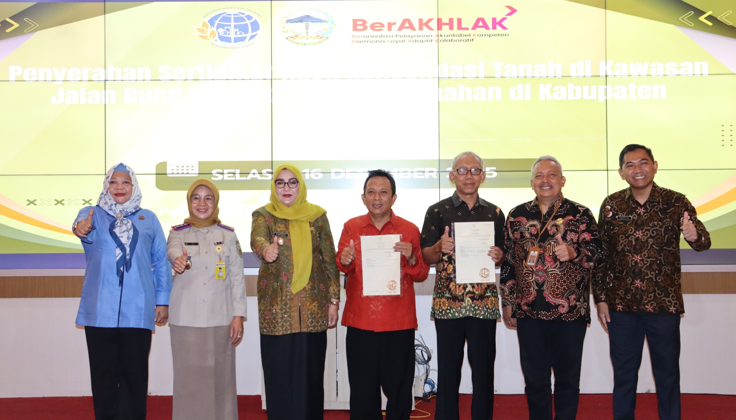 Banyumas | mediasinarpagigroup.com – Sebanyak 100 sertipikat hasil penataan kawasan bidang tanah melalui Konsolidasi Tanah (KT) di Kelurahan Kranji dan Kelurahan Tanjung secara resmi diserahkan kepada para pemilik tanah. Penyerahan tersebut langsung dilakukan oleh Wakil Bupati Banyumas, Dwi Asih Lintarti dan Kepala Dinperkim Banyumas, Sakti Suprabowo pada Selasa (16/12/25) di Smart Room Graha Satria