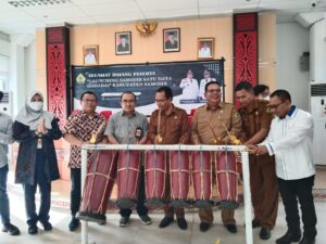 Samosir | mediasinarpagigroup.com – Bupati Samosir diwakili Pj . Sekda Waston Simbolon melaunching Aplikasi SASADA (Samosir Satu Data). Launching ditandai dengan pemukulan gendang bersama senior technical Component Lead USAID ERAT Jakarta, Ihsan Haeruddin, Analis Laporan Akuntabilitas Kinerja, Direktorat Jenderal Bina Pembangunan Daerah, Kemendagri Bavus Eko Prasetyo, Asisten II Hotraja Sitanggang, Kadis Kominfo Immanuel Sitanggang di Aula Kantor Bupati Samosir, 28/03.