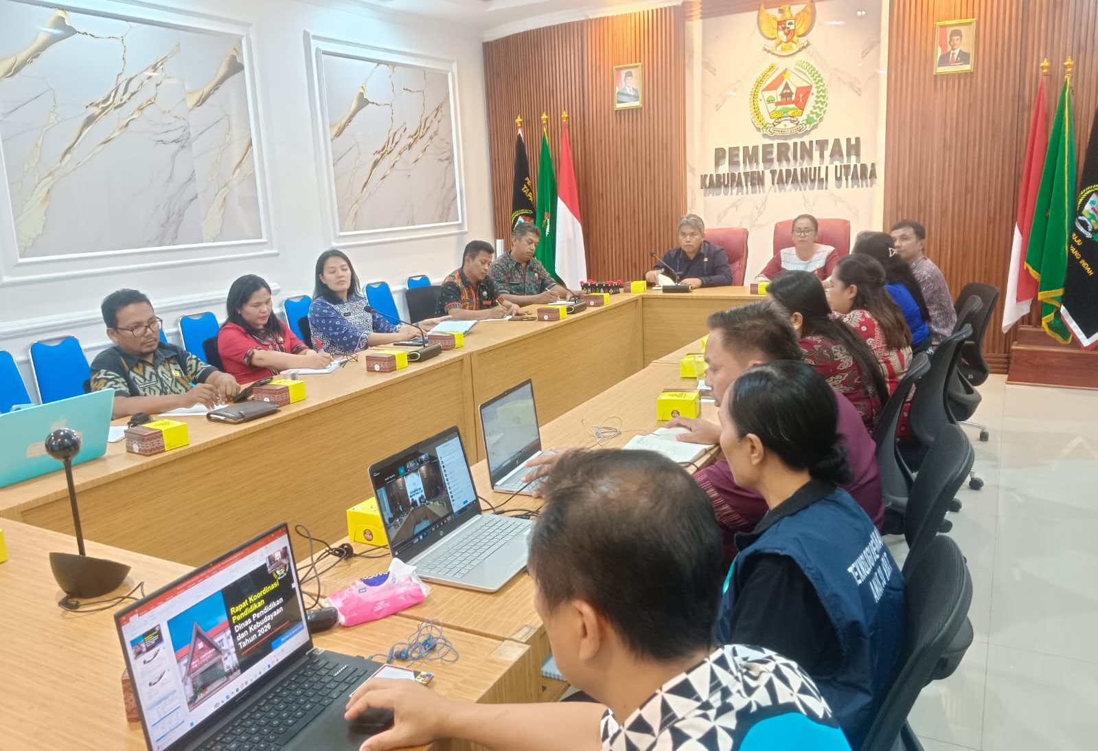 Taput | mediasinarpagigroup.com – Pemerintah Kabupaten Tapanuli Utara melalui Dinas Pendidikan dan Kebudayaan melaksanakan Rapat Koordinasi (Rakor) Pendidikan secara daring (webinar) yang dipimpin oleh Wakil Bupati Tapanuli Utara Dr. Deni Parlindungan Lumbantoruan, M.Eng, dipusatkan di Aula Mini Kantor Bupati Tapanuli Utara, Tarutung. Kamis (22/1/2026).