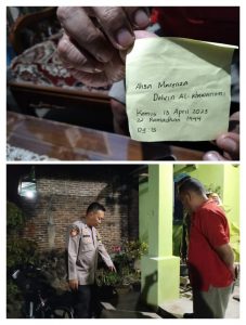 Saat ditemukan, bayi yang terbungkus dalam kain tersebut lengkap dengan peralatanya, yang di bungkus dengan tas berwarna hitam dan di dalam tas tersebut ditemukan sebuah tulisan “Ahsa Marenza Delvin Al-Khawarizmi Kamis 13 April 2023, 22 Ramadhan 1444 H 09:15 ”