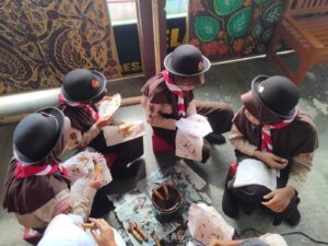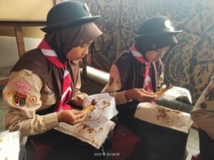 Setelah diberi penjelasan, para adik penggalang melakukan praktek membatik langsung.