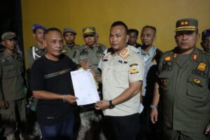 • Selanjutnya Kasi penertipan bangunan Sat Pol PP Kab. Langkat Sdr. Wira Ginting membacakan surat dari Sekda Kab. Langkat perihal penutupan sementara tempat usaha dan menyerahkan surat tersebut kepada pengawas tempat usaha an. Bambang Sembiring.