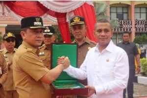 Paluta | mediasinarpagigroup.com – Pemerintah Kabupaten Padang Lawas Utara menyelenggarakan Apel Gabungan Pelepasan Bupati dan Wakil Bupati Padang Lawas Utara Periode 2018 s/d 2023 dan Penyambutan Penjabat Bupati Padang Lawas Utara di Halaman Kantor Bupati Padang Lawas Utara, Senin (18/12/2023).