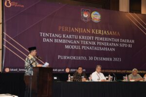 Banyumas | mediasinarpagigroup.com – Pemerintah Kabupaten Banyumas bersama dengan Bank Jateng Cabag Purwokerto melakukan penandatanganan perjanjian kerjasama kemitraan keuangan pemerintah daerah melalui Kartu Kredit Pemerintah Daerah (KKPD) pada Sabtu (30/12/23) di Krisna Ballroom Java Heritage Hotel.