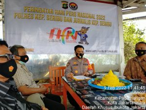 Jakarta Utara mediasinarpagigroup.com – Polres Kepulauan Seribu bersama insan pers yang tergabung dalam Jurnalis Kepulauan Seribu (JKS) serta Keluarga Besar Wartawan Jakarta Utara (KBWJU) mengelar Peringatan Hari Pers Nasional (HPN) ke-76 tahun 2002. Kegiatan yang dilaksanakan secara sederhana namun penuh khidmat di hadiri oleh Kapolres Kepulauan Seribu AKBP Eko Wahyu Fredian yang diwakili oleh Wakapolres Kompol H. Jajang Sukendar.