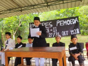 “Peringatan hari besar nasional (PHBN) diperingati dengan kegiatan seperti ini agar para murid bisa merasakan pengalaman secara langsung. Mereka mengalami dan mengikuti kronologis yang terjadi pada Kongers Pemoeda ke-II sejak awal hingga dihasilkan Ikrar Sumpah Pemuda. Kegiatan ini juga bertujuan untuk menumbuhkan jiwa nasionalisme sejak dini pada anak-anak,” tambahnya.