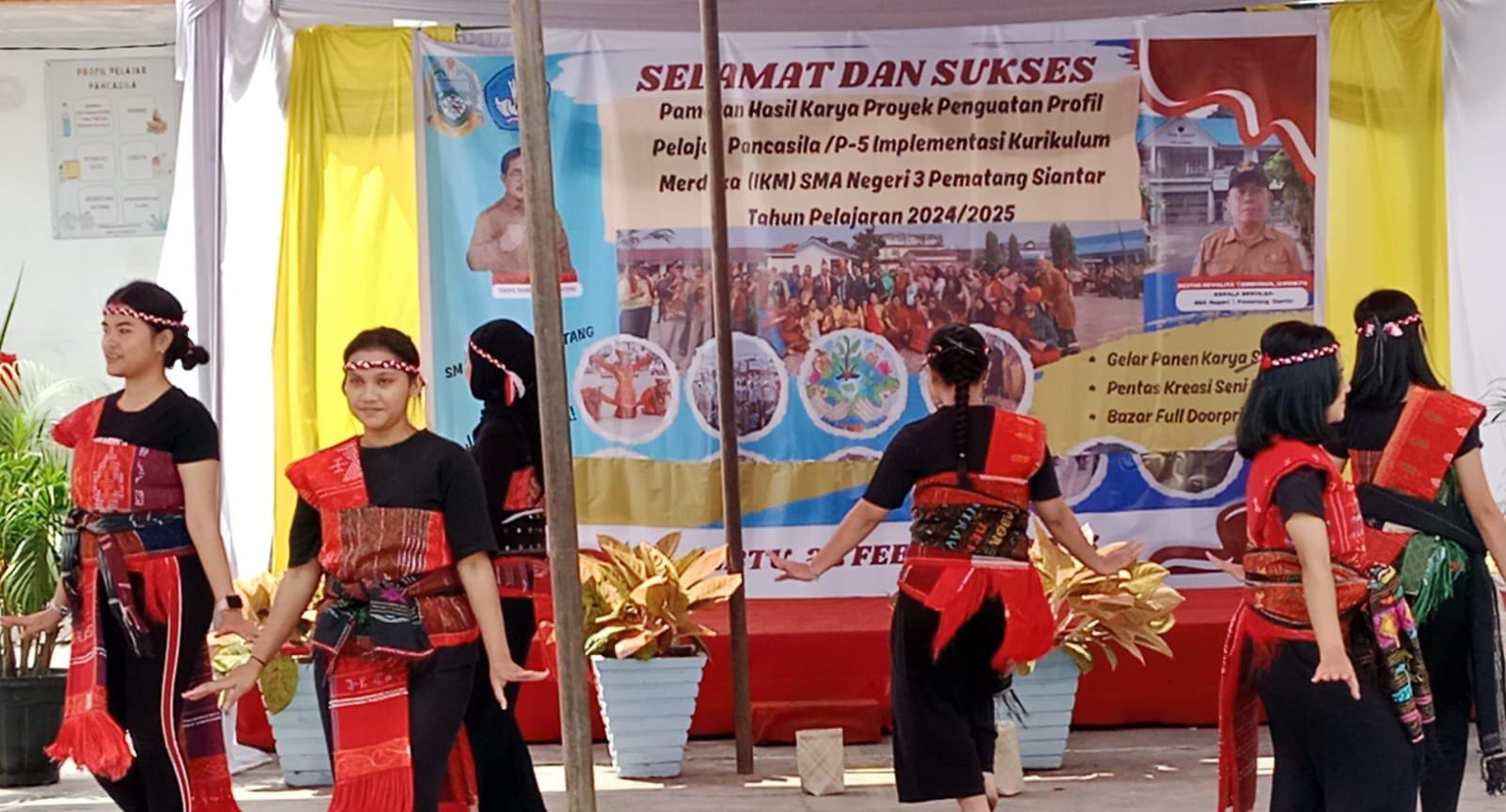 Pematang Siantar | mediasinarpagigroup.com –  Acara Pameran hasil karya Proyek Penguatan Profil Pelajar Pancasila (P5) salah satunya dengan tari-tarian dari berbagai suku di Indonesia, dan juga para siswa diajarkan untuk berwirausaha dengan membuka stand jualan makanan dan minuman. Acara ini tentunya terlaksana di bawah kepemimpinan bapak kepala sekolah Restar Revolita Tambunan. Acara pesta ini juga dipenuhi Lucky draw yang cukup memeriahkan bagi anak-anak didik SMA N 3 Pematangsiantar.