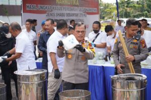 “Pemusnahan ini menjadi bagian dari proses penyidikan yang dilakukan oleh penyidik Ditresnarkoba Polda, makanya ikut kita hadirkan unsur Kejaksaan dan Pengadilan disini,” ujar Brigjen Kasihan Rahmadi.
