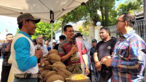 Banyumas | mediasinarpagigroup.com – Dinas Pertanian dan Ketahanan Pangan (Dinpertan KP) Kabupaten Banyumas menggelar Pasar Tani Minggu (19/11/2023) di halaman kantornya. Kegiatan yang dibuka oleh Pj Bupati Banyumas Hanung Cahyo Saputro dilaksanakan sebagai upaya mengendalikan inflasi, khususnya yang dipicu oleh kenaikan harga komoditas pangan. Selain itu juga untuk memperkenalkan produk-produk pertanian Banyumas kepada masyarakat.