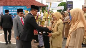 Setelah upacara, Pj Bupati dengan didampingi Forkopimda meluncurkan Maskot Kesehatan yaitu Popo atau Poksay Putra dan Popi Poksay Putri. Selain itu juga diserahkan penghargaan lomba bidang kesehatan. (Widoyo)