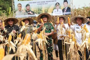 Pj Gubernur Banten Al Muktabar Dampingi Wamentan dan Pangdam III Siliwangi Panen Raya Jagung