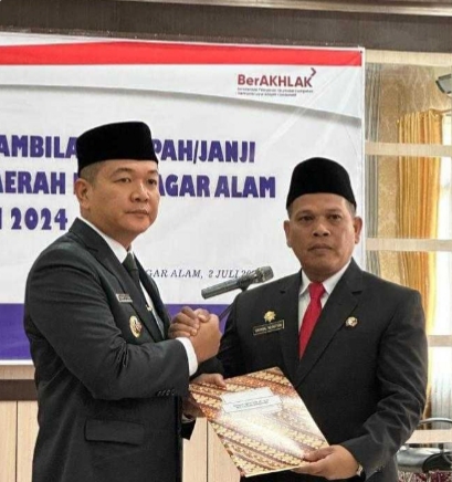 Pelantikan dan pengambilan sumpah/janji ini berdasarkan pada Keputusan Gubernur Sumatera Selatan No.11325/KPTS/BKD.II/2024 tentang Penunjukan Penjabat Sekretaris Daerah Kota Pagar Alam Tanggal 21Juni 2024.